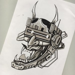 般若机器人面具纹身手稿